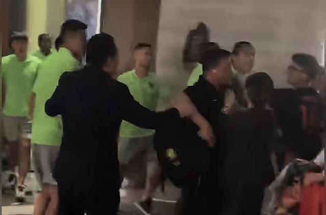 据直播吧,比赛结束后,国安众将在酒店内与球迷发生激烈冲突。视频显示,当国安队赛后回到驻地酒店时,守候在大堂的部分北京球迷对球队的表现十分不满。国安教练组成员和球员本已进入电梯,但听到球迷的喊声后又挡开电梯门,王刚、张玉宁等人情绪激动地冲向球迷,张玉宁大声嚷着:“难道我们不想踢好吗?”随后冲向球迷,但被国安队友拦住。