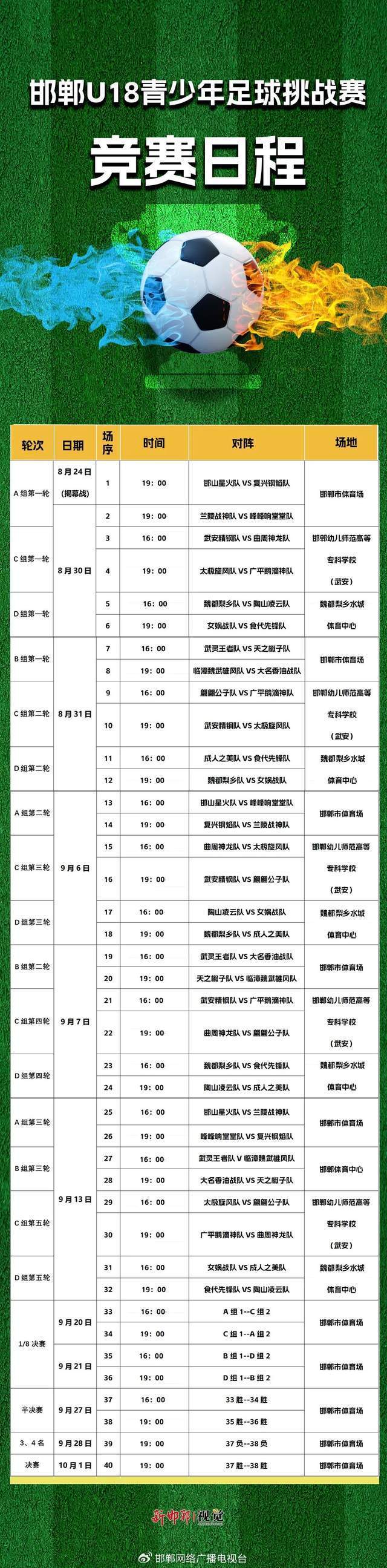邯郸U18青少年足球赛竞赛日程曝光,“战国十八公子”集体出道!
